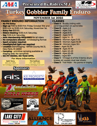 The Turkey Gobbler is our family Enduro that is fun for all ages!